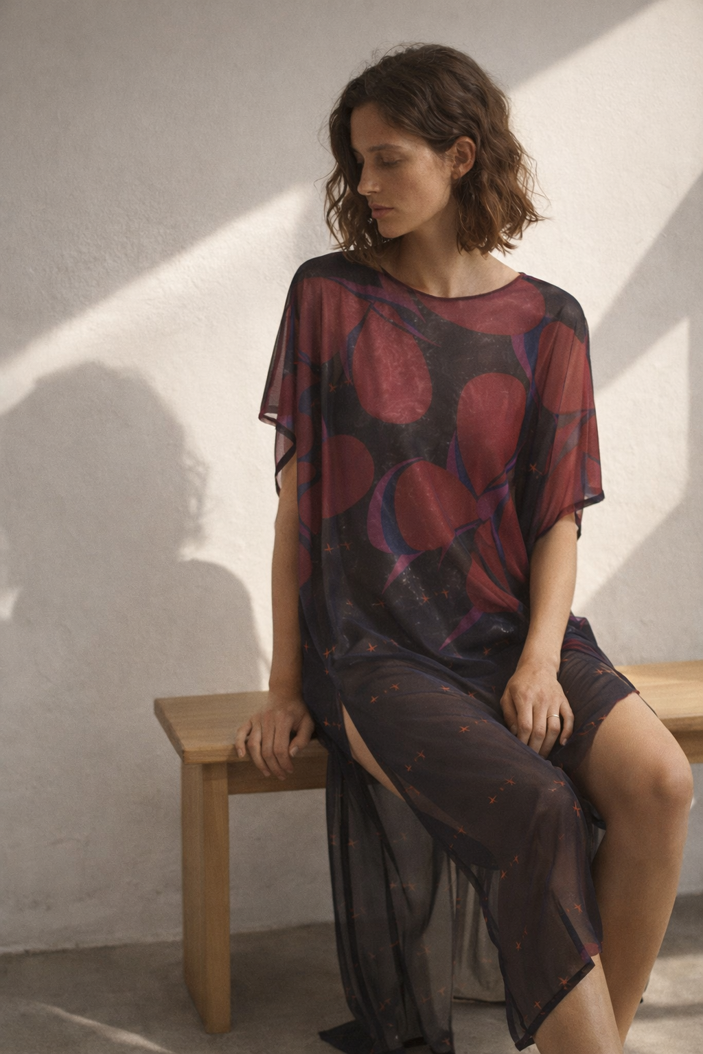 Esta túnica de micro tul estampada exclusiva cuenta con tajos laterales, lo que la hace versátil y única. Añádela a tu guardarropa y te enamorarás de su estilo y comodidad. Perfecta para cualquier ocasión, ¡no querrás quitártela!